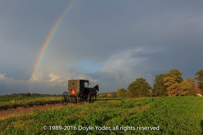 New Bedford, Holmes Co. Ohio rainbow with buggy going away on road