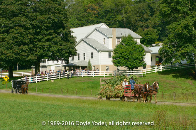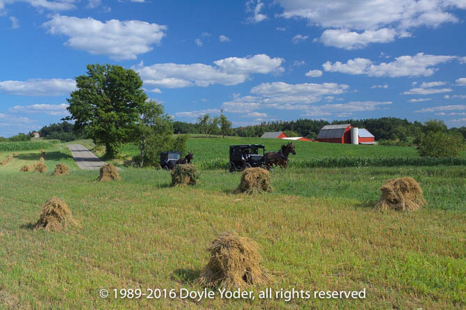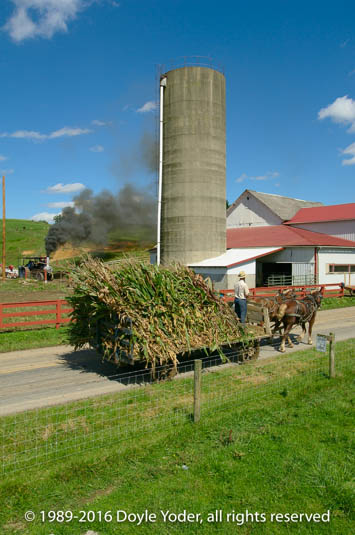 Walnut Creek, Holmes Co. Ohio wagons with cornstalks for filling silo at The Farm at Walnut Creek
