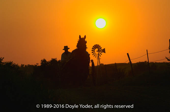 Maysville, Wayne, Co. Ohio Boy riding pony with sunset behind