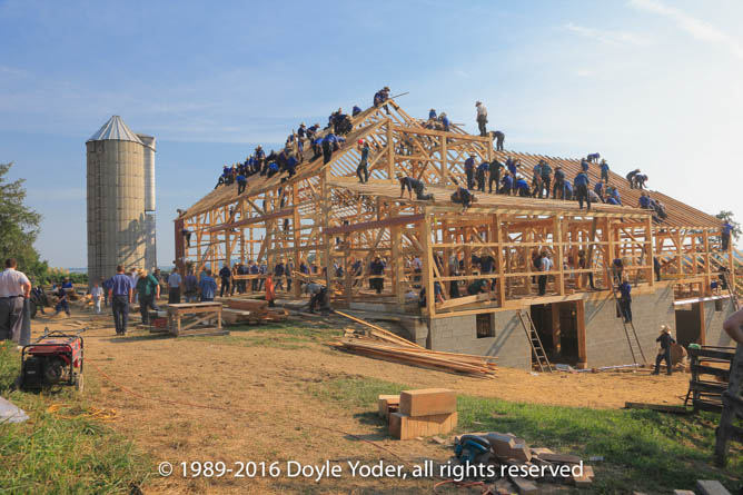 Lakeville, Holmes Co. Ohio Barn Raising with addition on to existing barn