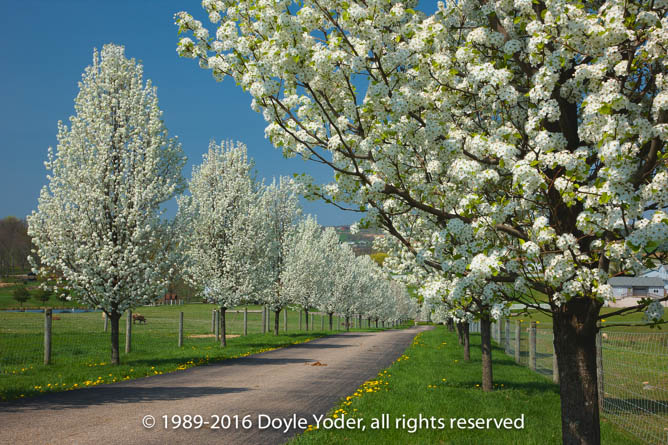 Mt Hope Holmes Co. Ohio Flowering trees along driveway